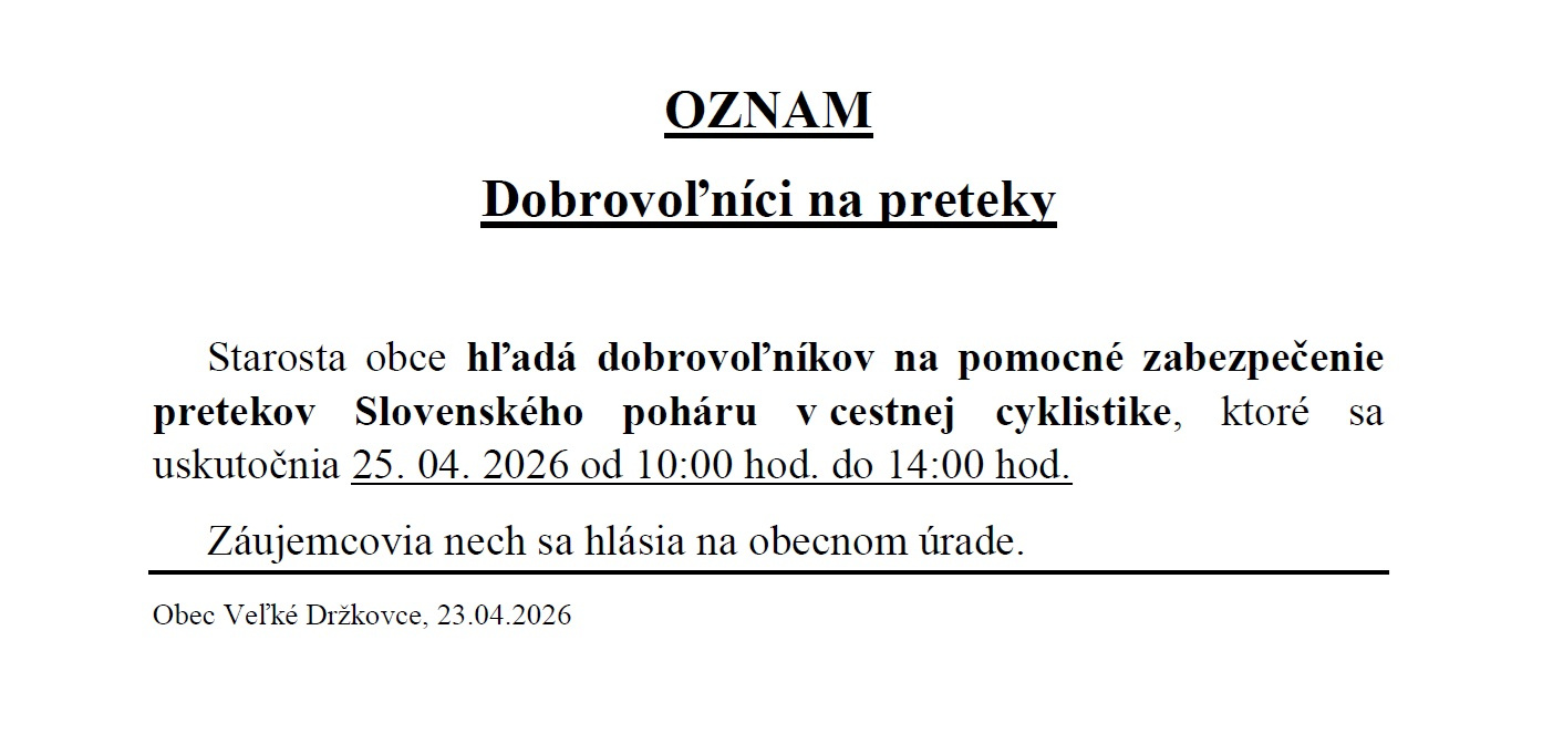 Dobrovoľníci - Cyklistické preteky 25.04.2026