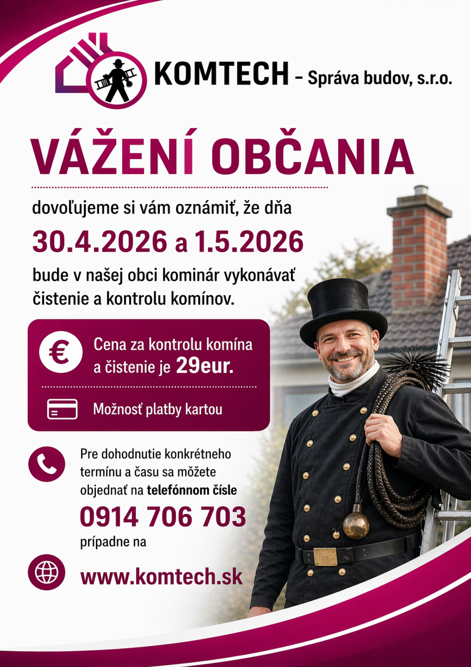 KOMTECH - kontrola a čistenie komínov