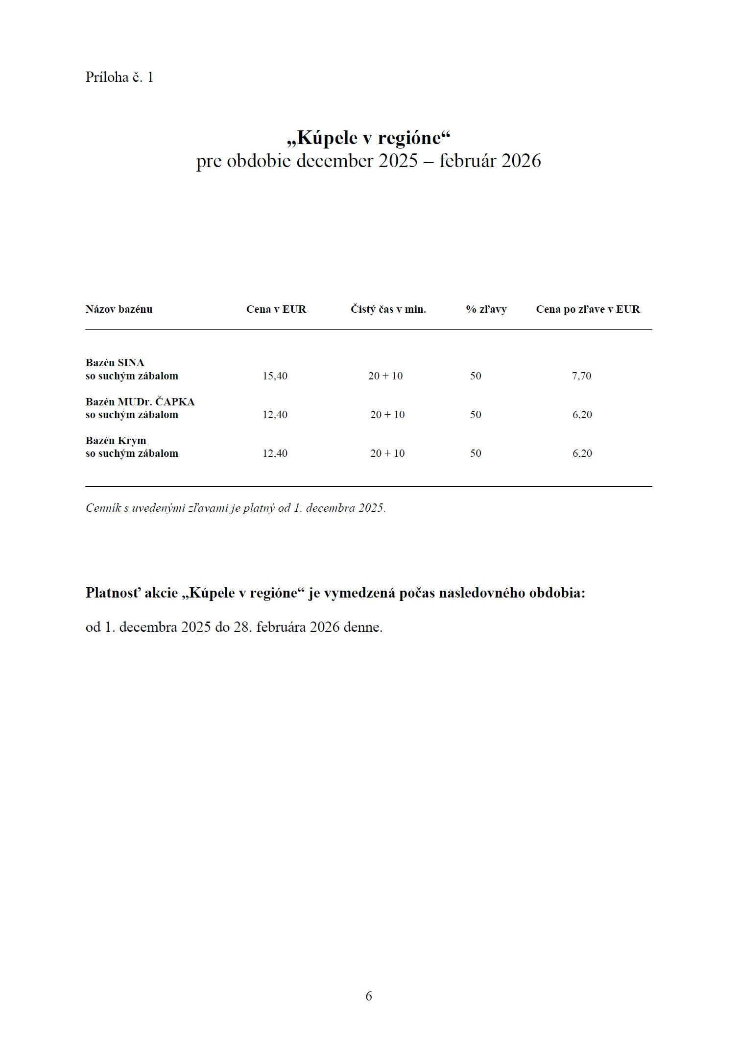 Kúpele v regióne 1.12.2025 - 28.2.2026