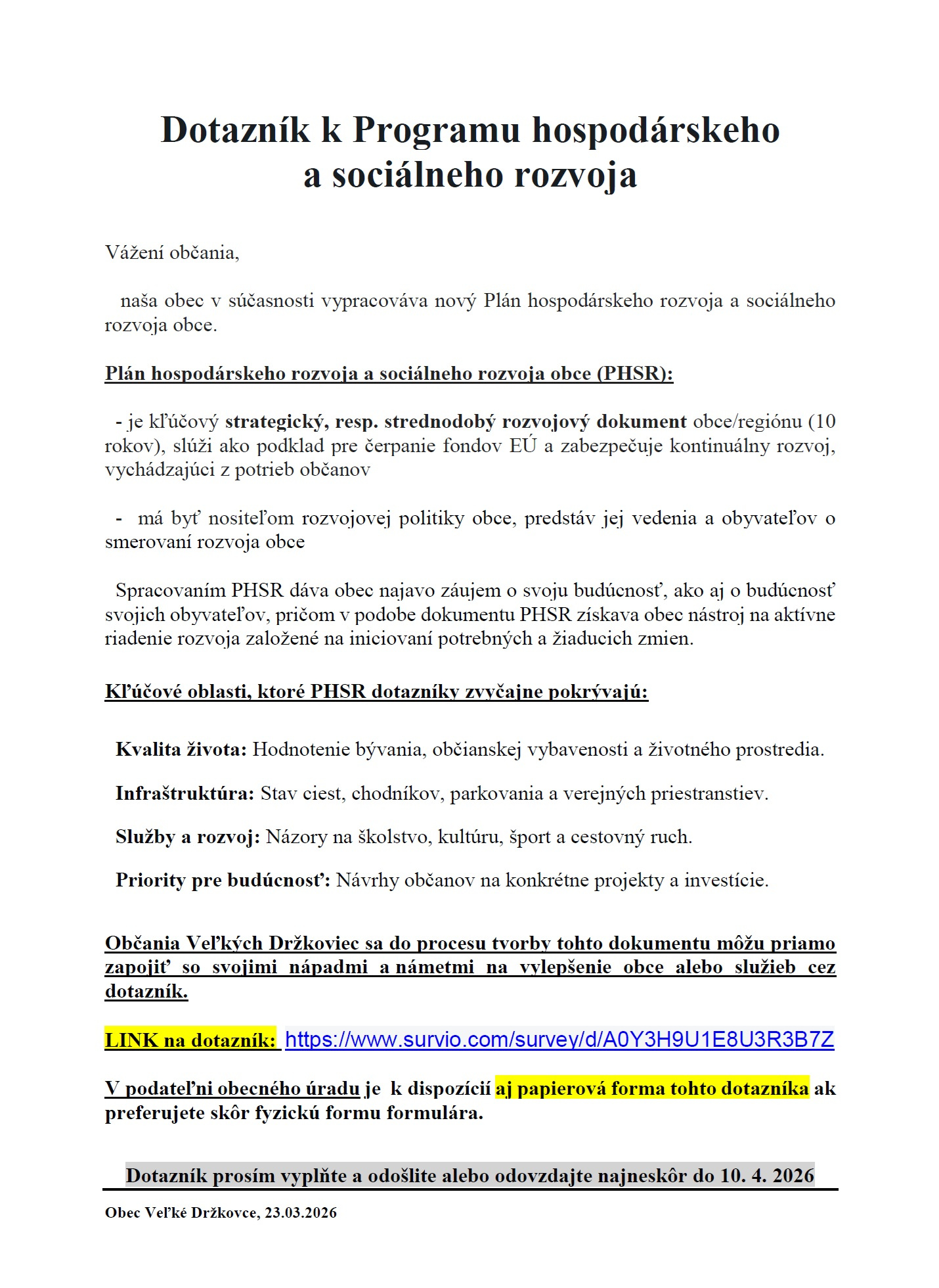 DOTAZNÍK k Programu hospodárskeho a sociálneho rozvoja