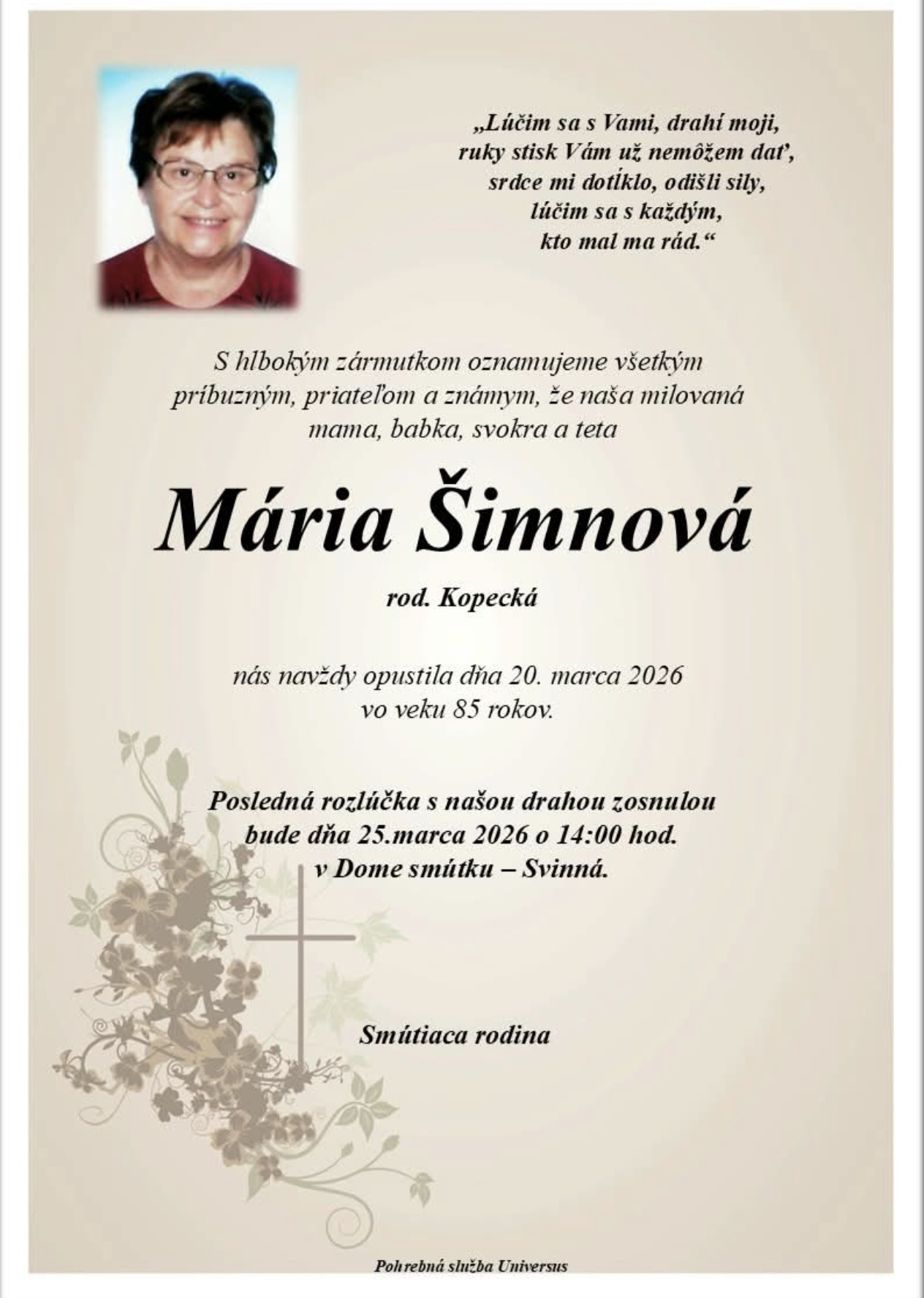 PARTE p. Mária Šimnová , rod. Kopecká