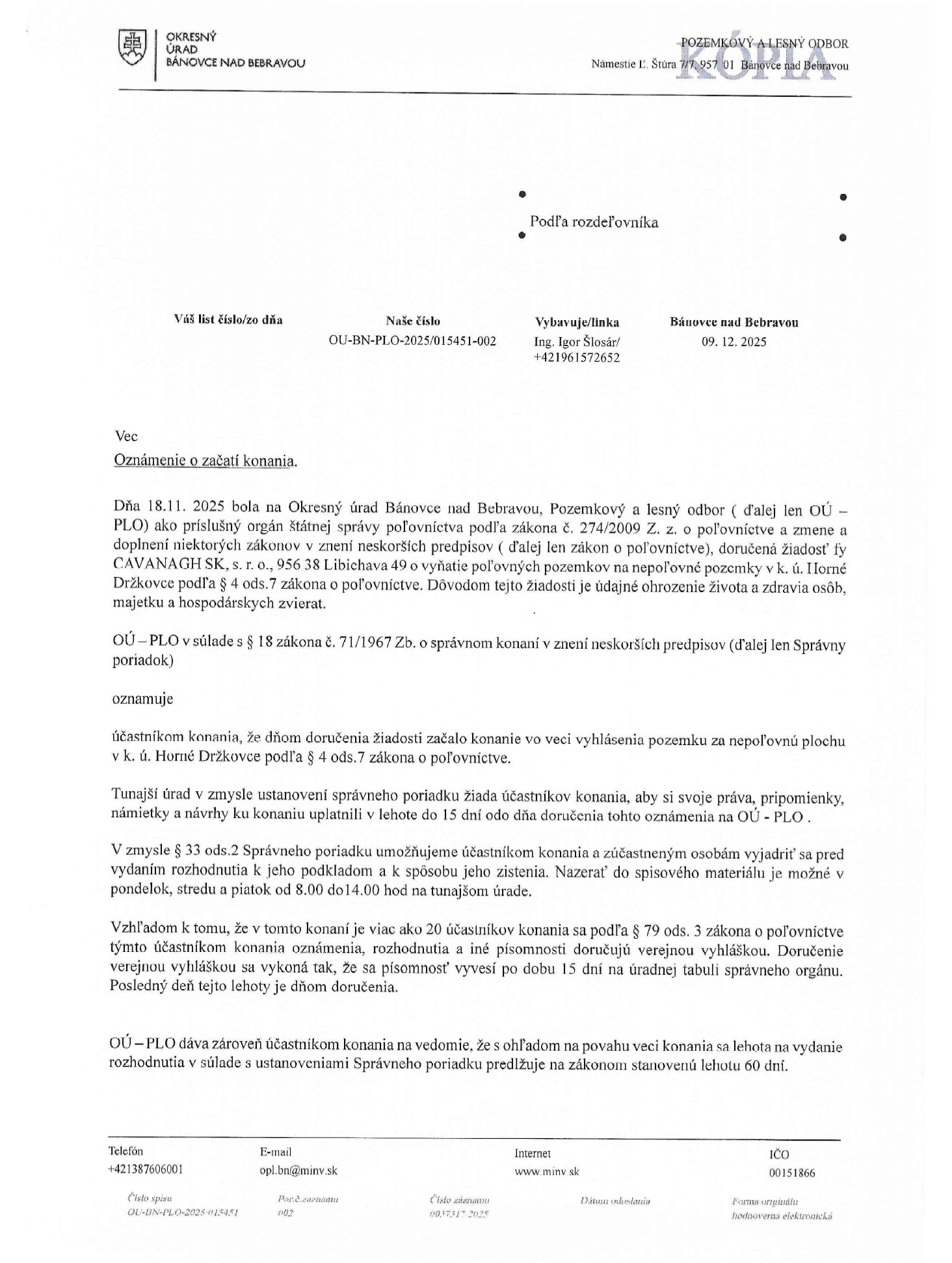 Okresný úrad Bánovce nad Bebravou - Oznámenie o začatí konania