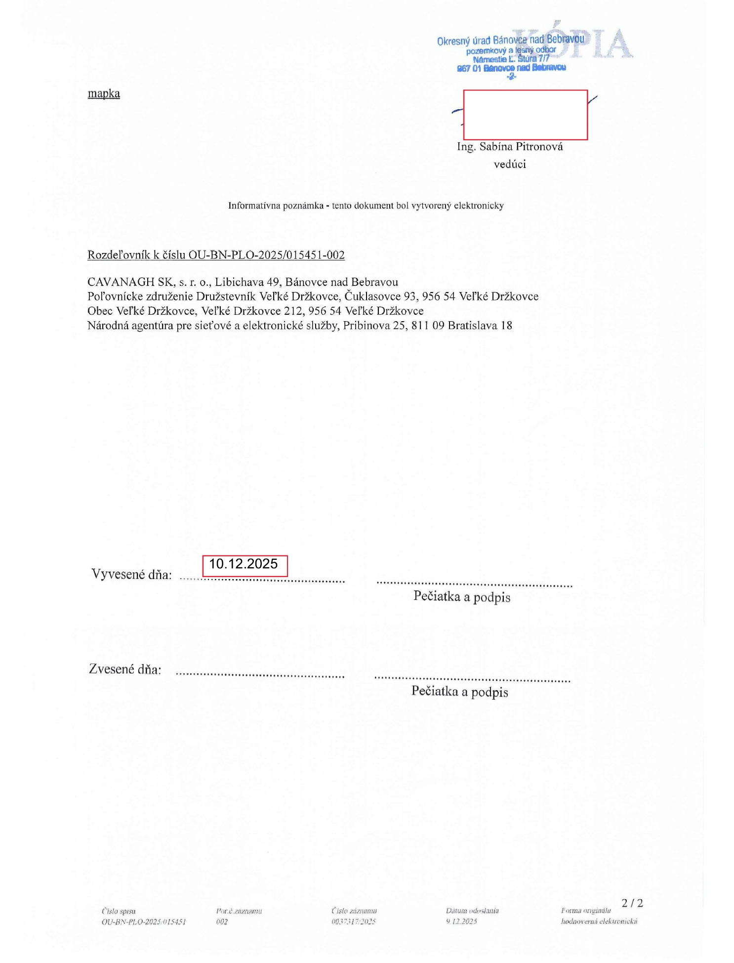 Oznámenie o uložení písomnosti na obecnom úrade - Marek Strempek