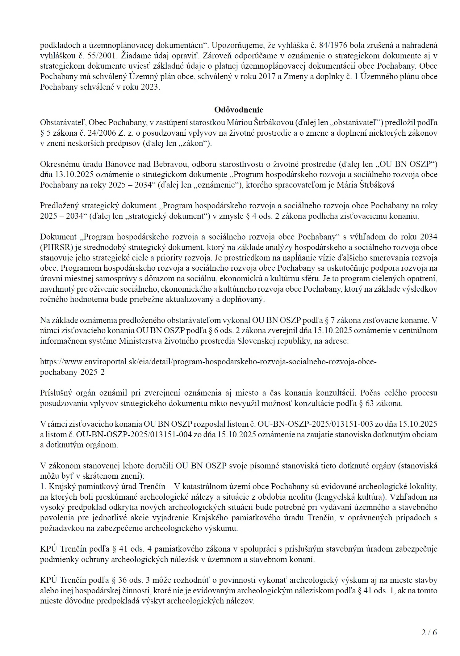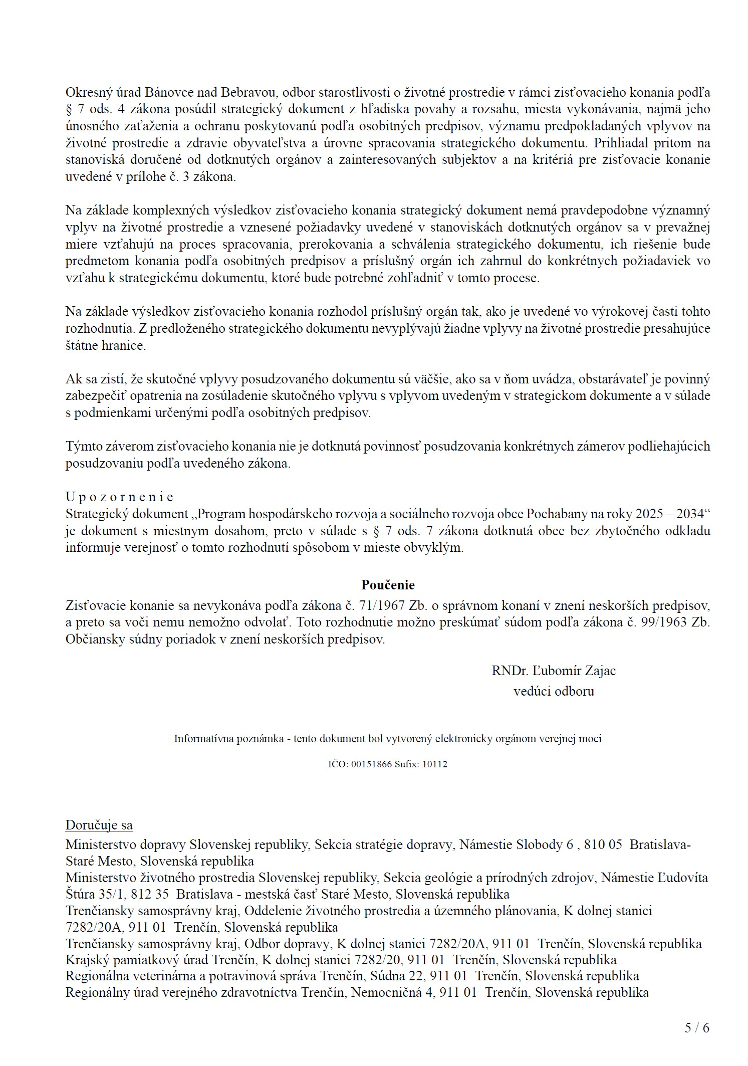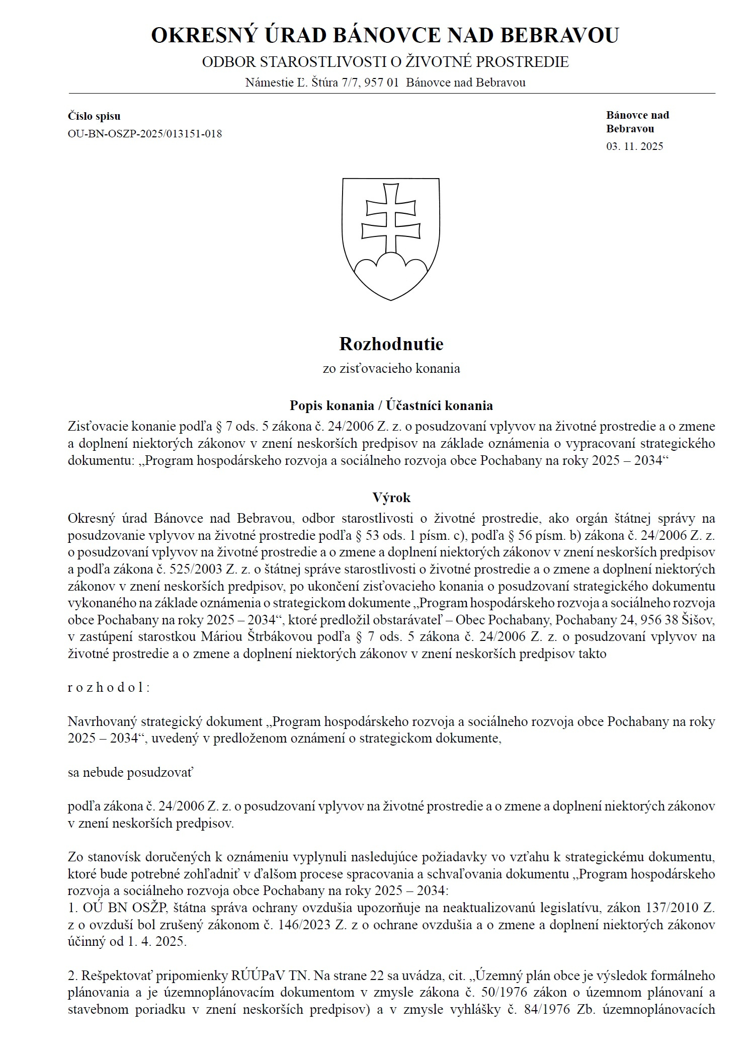 ROZHODNUTIE - ’’Program hospodárskeho rozvoja a sociálneho rozvoja obce Pochabany na roky 2025-2034